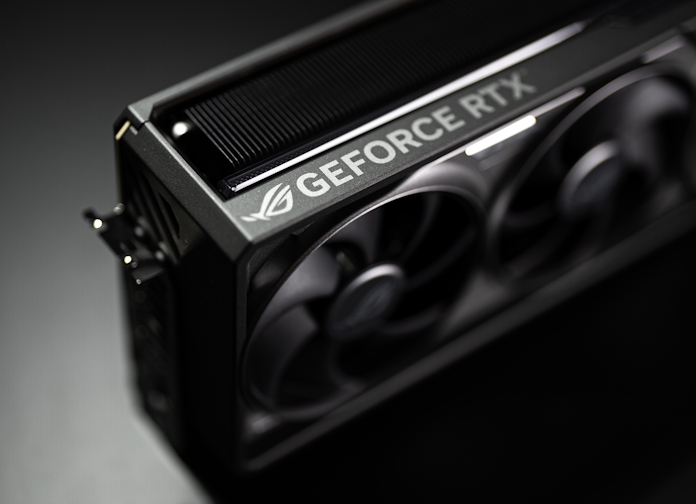 A view of the end bracket on an ROG Astral GeForce RTX graphics card