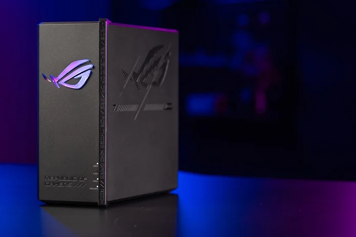 As a side note, that’s why we offer wireless routers in a wide range of styles: we want you to feel comfortable bringing your router out of the closet and into one of your primary living spaces. The ROG Strix GS-BE18000 uses internal antennas for a streamlined exterior that’ll fit easily on a shelf, while letting you personalize its looks through customizable ROG Aura RGB lighting effects.
